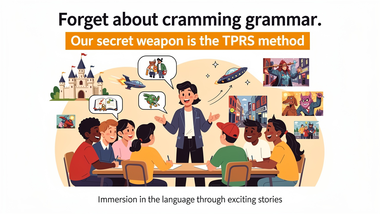 Ответ: TPRS (Teaching Proficiency through Reading and Storytelling) — это метод освоения языка через смысл и контекст, а не через правила.